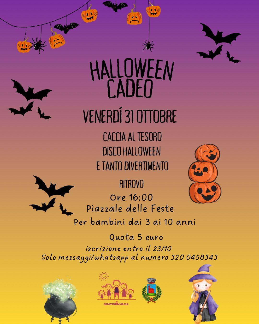 Iscrizioni entro il 23 ottobre solo tramite messaggio Whatsapp 320 0458343