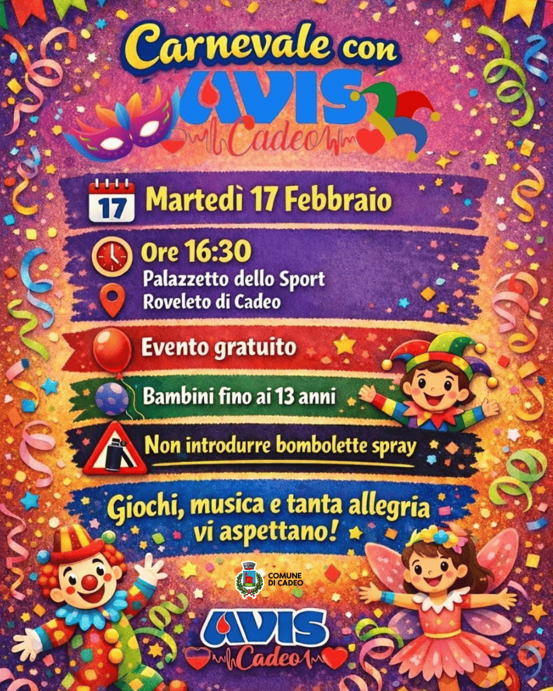 Vi aspettiamo Martedì 13 febbraio presso il Palazzetto dello Sport a Roveleto di Cadeo!